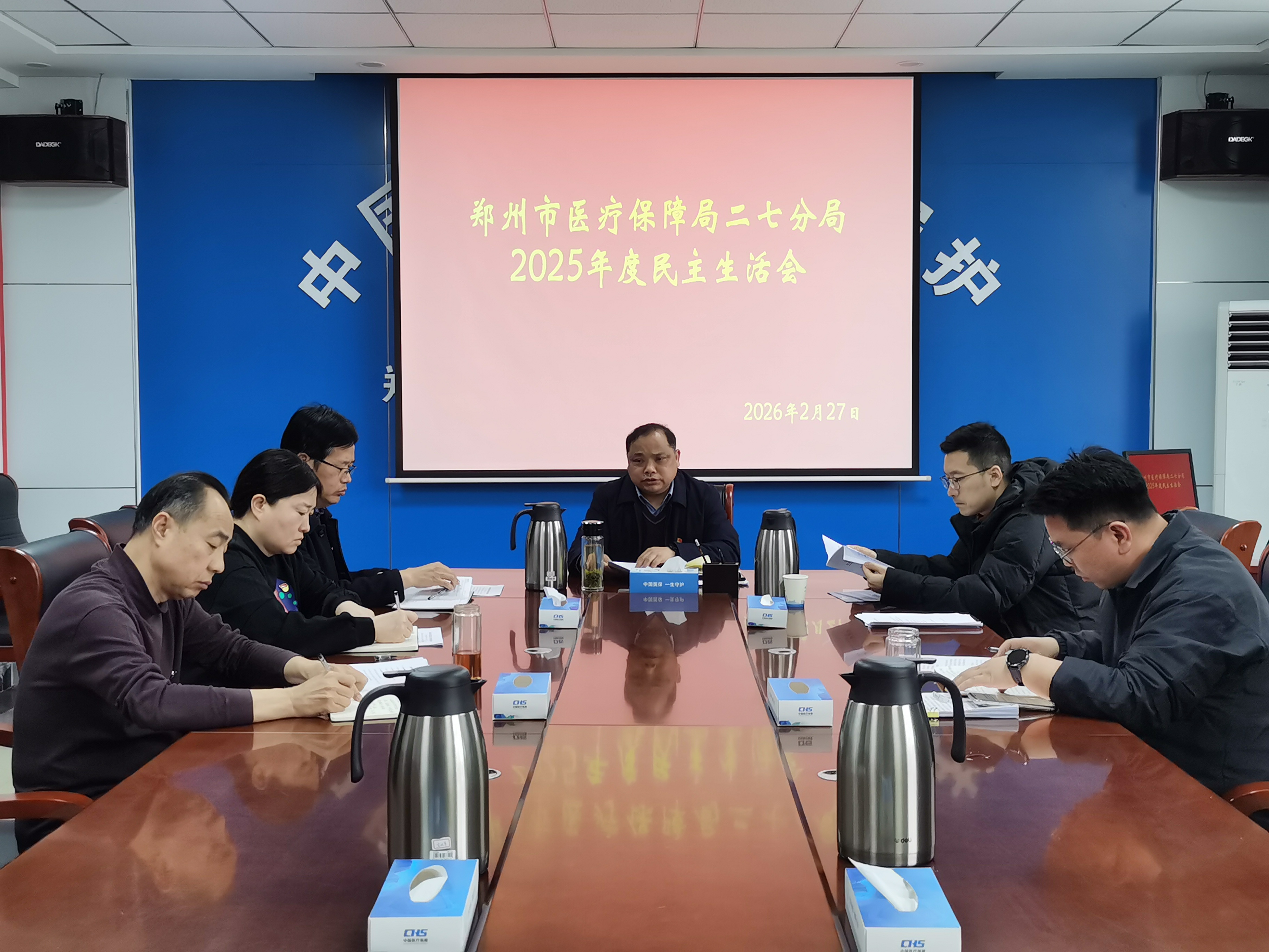 2月27日上午,二七医保分局召开2025年度民主生活会。会议深入学习贯彻习近平新时代中国特色社会主义思想和党的二十届四中全会精神,紧扣民主生活会主题,深入查摆问题,深刻剖析原因,严肃开展批评和自我批评,提出整改措施。二七医保分局负责人主持会议并作总结发言,区纪委监委驻区卫生健康委员会纪检监察组组长张锐同志到会指导。