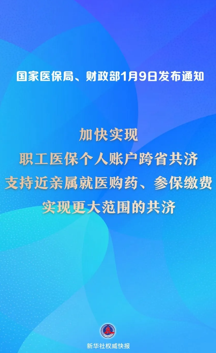 1月9日,国家医保局会同财政部发布《关于做好职工基本医疗保险个人账户跨省共济工作的通知》,进一步优化个人账户共济政策,打破地域限制,强化家庭互助功能,将职工基本医疗保险个人账户共济范围从省内拓展至全国。