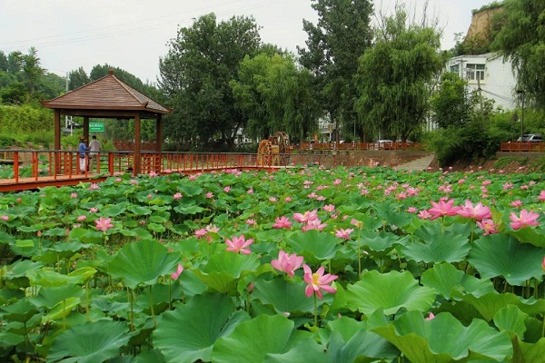 “中原第一沟谷木栈道”凤溪栈道全长2.6公里,贯穿整个鱼趣欢乐谷,与渔溪浅钓线遥相呼应,沿途被黄土地质景观和森林包围,空气清新,适合健步走。栈道途径凤羽湖,湖中种植百亩荷花,七八月份非常适合赏荷游玩。