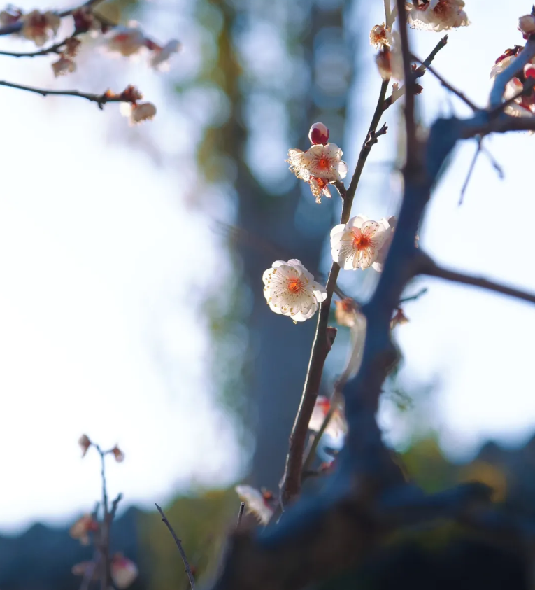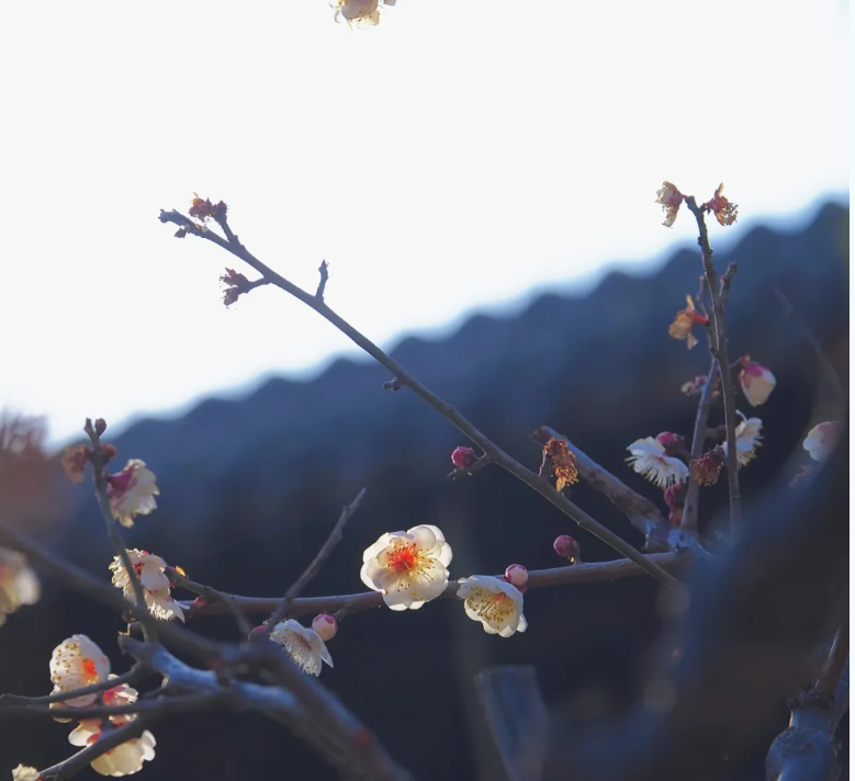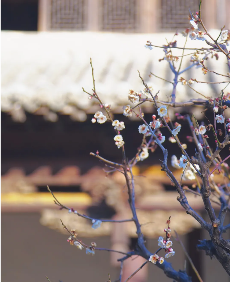 更妙的是瞻园的“古建+梅花”组合:青瓦白墙的马头墙错落有致,飞檐翘角的古建群在薄雾中若隐若现,当粉嫩的梅花作为前景轻倚墙垣,古朴的马头墙便成了天然的画框,无论是仰拍花枝与飞檐的交叠,还是俯拍花瓣落在青石板上的斑驳,随手一拍都能收获“人在画中游”的氛围感大片。